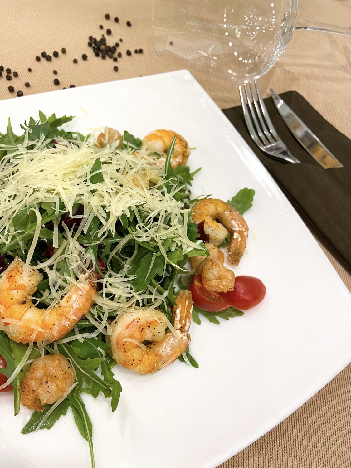Всё было замечательно! Особенно понравился салат Цезарь с креветками и ещё один салат. Официанты прекрасно обслуживали гостей.