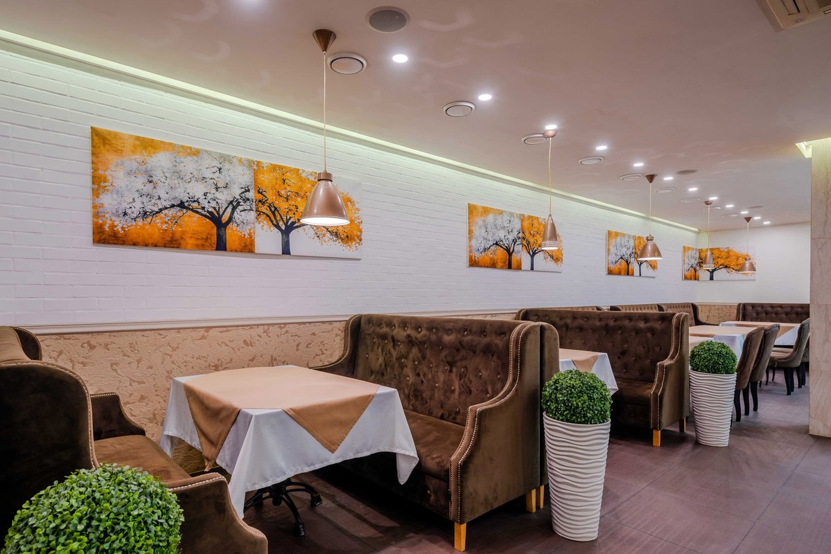 Понравилась спокойная атмосфера. Немноголюдно, играет музыка. Заказывала мясной салат. Ресторан подходит для проведения торжественных мероприятий.